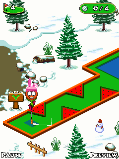 В этой игре вы должны забить мяч для гольфа в более, чем 90 лунок и пройти 5 уровней. Старайтесь забивать мяч, используя как можно меньшее количество ударов и вы станете победителем! Выигрывайте виртуальные медали и трофеи. Игра имеет множество настроек - вы можете играть одним из веселых персонажей, каждый из которых имеет свой собственный стиль игры. Игровые уровни можно проходить о нескольку раз, улучшая свой результат. Размеры экранов: 128x128, 128x160, 176x208, 176x220, 208x208, 240x320, 320x240, 352x416.