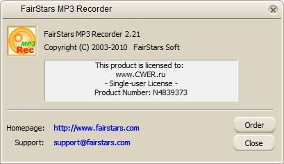 Скачать программу FairStars MP3 Recorder 2.21 (2,63 МБ):