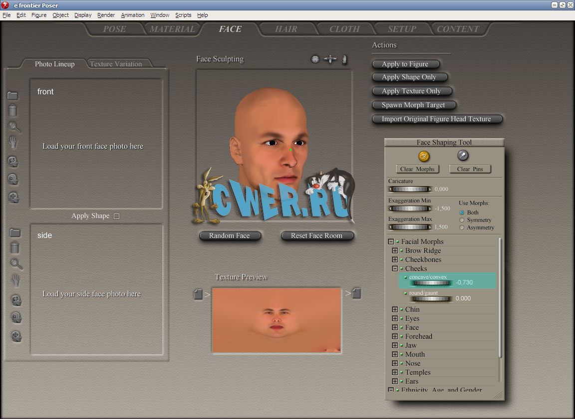 * Brush-like Morphing Tools – Poser 7’s new Create tab on the Morphing Tool palette provides powerful interactive controls for creating your own custom morph targets. Easily create custom morphs on your figures just like you would with any brush tool.