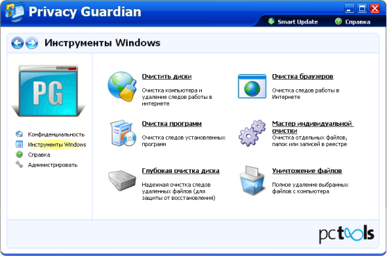 Privacy Guardian - надежное и удобное средство защиты конфиденциальной информации, которое удаляет следы присутствия в Интернете и записи, регистрирующие работу программ, которые хранятся в браузере и других скрытых файлах компьютера без возможности их восстановления. Позволяет легко и надежно удалить конфиденциальные файлы из Windows, Microsoft Office, Windows Media Player, Mozilla Firefox, Google Chrome, Opera и Internet Explorer.