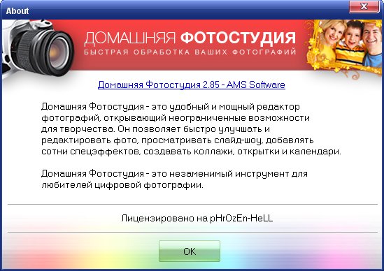 Скачать программу "Домашняя Фотостудия 2.85" (50,51 МБ):