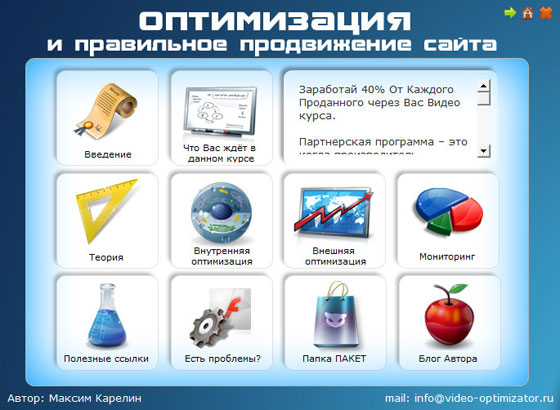 После изучения видеокурса Вы овладеете знаниями оптимизатора, так же Вы получите большой опыт и узнаете огромное количество правил, которых Вам нужно придерживаться при поисковой оптимизации и продвижении Вашего ресурса.