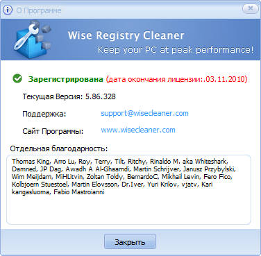 Скачать программу Wise Registry Cleaner Pro 5.86 Build 328 (2,36 МБ):