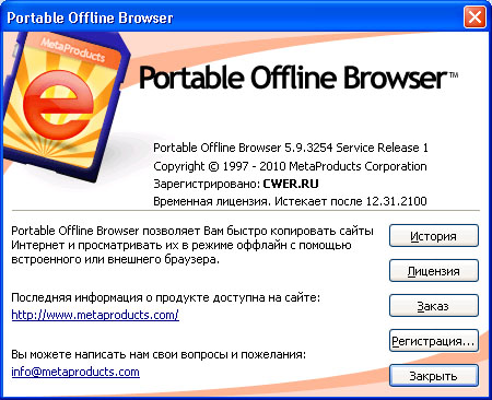 Скачать программу Portable Offline Browser 5.9.3254 SR1 (8,79 МБ):
