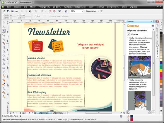 • Полностью переработанная система управления цветом обеспечивает контроль за соответствием цветовых параметров для различных носителей и создание индивидуальной цветовой палитры для каждого документа, а также поддержку новых цветовых профилей PANTONE®.