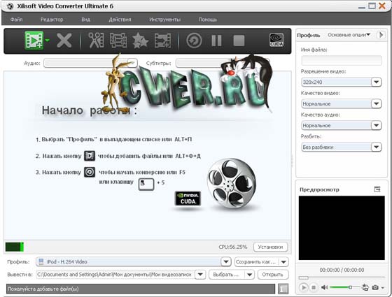 Xilisoft Video Converter - мощный и универсальный видео конвертер. Поддерживает большинство популярных видео форматов, в том числе DVD, VCD, SVCD, MOV, RM, AVI, MPEG, MPEG1, MPEG2, MPEG4, WMV, 3GP и других, извлечение аудио из видео в MP2, MP3, AC3, RA, M4A, OGG, AAC и другие форматы, пакетный режим конвертирования, предварительный просмотр во встроенном проигрывателе, выбор и настройка аудио и видео кодеков, настройка параметров конвертирования, простой и удобный интерфейс.