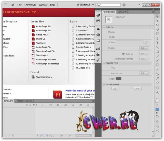 Основные функции Flash Professional CS5: