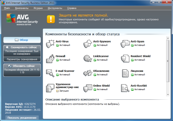 Скачать программу AVG Internet Security Business Edition 2011 v10.0.1170 x86 (152,18 МБ):