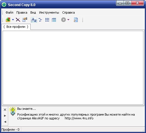 Second Copy позволяет создавать «вторые копии» важных пользовательских файлов или, говоря иначе, осуществляет резервное копирование. Программа допускает создание нескольких профилей/задач, а также автоматизацию их запуска с помощью планировщика.