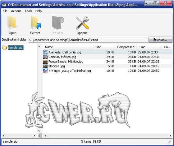 Программа позволяет просматривать содержимое архивов, не распаковывая их. Утилита Zipeg обеспечивает возможность ознакомления со всеми вложенными файлами архива в режиме превью, а затем позволяет извлечь оттуда только нужные документы. Функции утилиты позволяют перенести распаковываемые файлы традиционным Drag&Drop способом из окна программы в требуемую папку. Программа Zipeg позволяет просматривать и переносить файлы из архивов: ZIP, RAR, 7z, ARJ, LHA, TGZ, TAR и т.д. Фотографии и изображения, находящиеся в архивах открываются сразу.