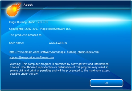 Скачать программу Magic Burning Studio 12.3.1.31 (52,27 МБ):