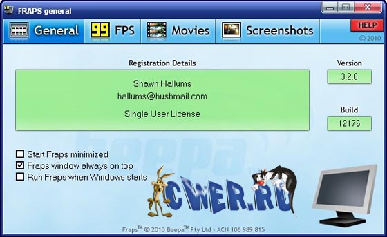 Скачать программу Beepa Fraps 3.2.5 Build 12176 (2,67 МБ):