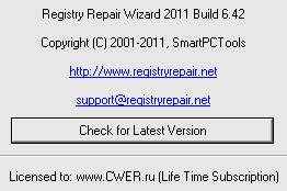 Скачать программу Registry Repair Wizard 2011 6.42 (3,5 МБ):