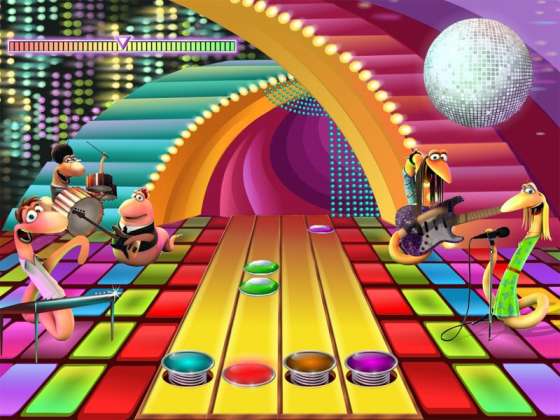 • Выбери уровень сложности и стань одним из них: клавишником Барри, барабанщицей Донной, гитаристом Джимми или Тито