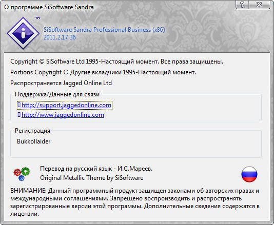 Скачать программу SiSoftware Sandra Pro Home 2011.2.17.36 (56,14 МБ):