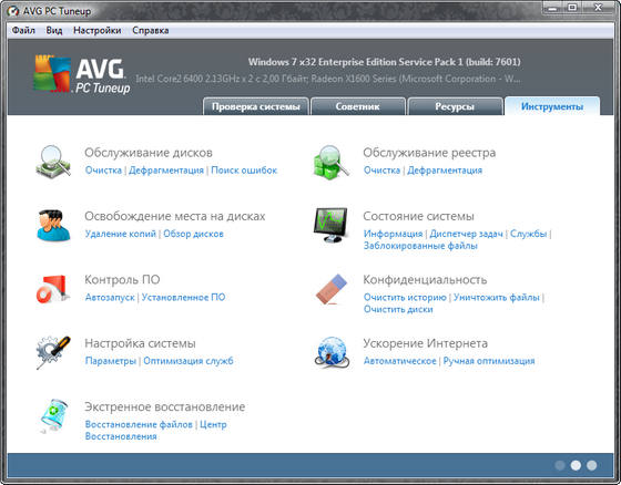 AVG PC Tuneup 2011 - идеальное решение проблемы оптимизации Вашего компьютера. Это мощное средство по настройке Вашей системы наиболее оптимальным способом, очистке Вашего реестра и диска, а также оптимизации Ваших программ. Программа содержит набор из более чем 18-ти утилит, способных очистить, ускорить и решить проблемы Вашего компьютера.