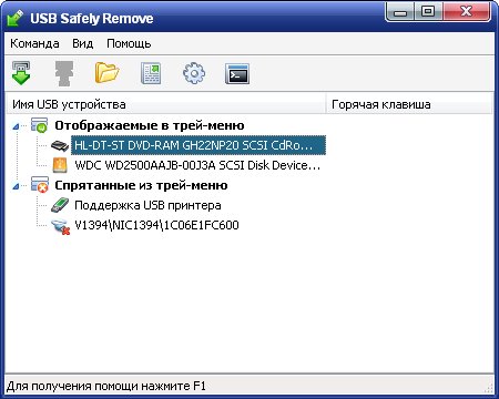 Обратите внимание на понятные имена устройств; USB Safely Remove определяет истинные имена устройств. Это позволяет отключать именно нужное Вам устройство!