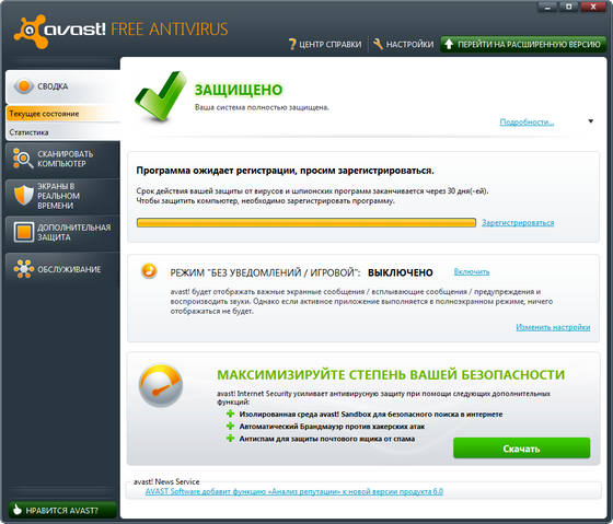 Скачать программу avast! Free Antivirus 6.0.1000 Final (59,65 МБ):