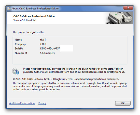 O&O SafeErase 5 Professional Edition 5.0.366
