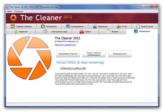 The Cleaner - многофункциональная программа для чистки вашего компьютера от шпионов, троянов, червей и т.д. ПО обеспечивает защиту компьютера в реальном времени от попыток несанкционированной установки вредоносных программ. Также реализована зона карантина, проверка компьютера по расписанию, получение обновлений базы данных сигнатур по троянам и другому вредоносному ПО через Интернет.