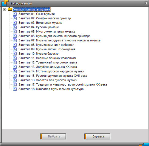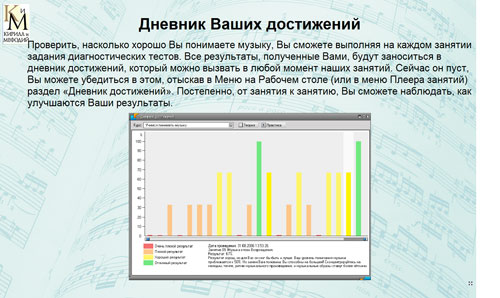 • Занятия курса в современной мультимедийной форме расскажут о музыкальных жанрах, стилях и направлениях, научат слушать и понимать музыку, а тестовые задания станут отражением ваших успехов в "Дневнике достижений"