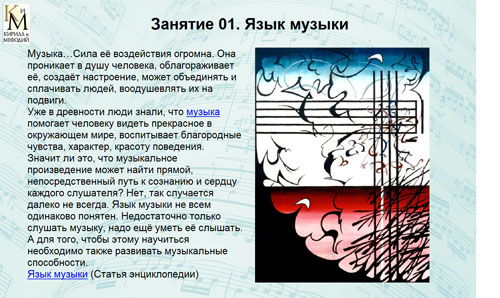 Компания "Кирилл и Мефодий" представляет уникальный практический курс "Учимся понимать музыку" из серии "Школа развития личности". Мультимедиа-пособие позволит вам научиться понимать музыку, с легкостью ориентироваться в ее многообразном мире.