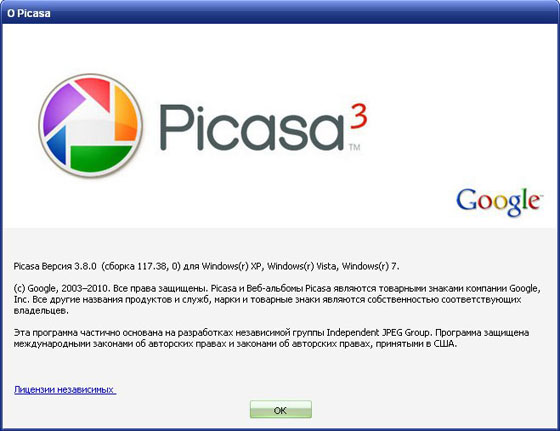 Скачать программу Picasa 3.80 Build 117.38 (13,61 МБ):