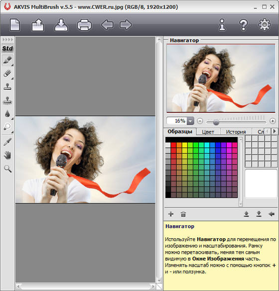 AKVIS MultiBrush — идеальное решение для ретуши фотографий и рисования картин, удаления ненужных деталей и добавления новых. Название программы MultiBrush означает "множество кистей". И в самом деле, это настоящая лаборатория, в которой можно отредактировать портрет, восстановить старый снимок, дорисовать что-нибудь на фотографию или нарисовать изображение с нуля. В программе представлено два набора инструментов — Стандартные и Художественные кисти.