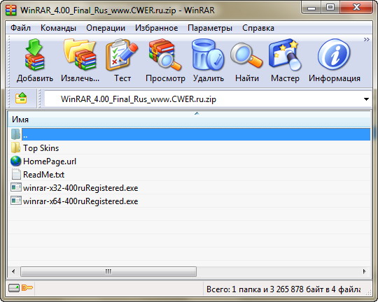 Скачать программу WinRAR 4.00 Final Rus 32\64 + Top Skins (4,1 МБ):
