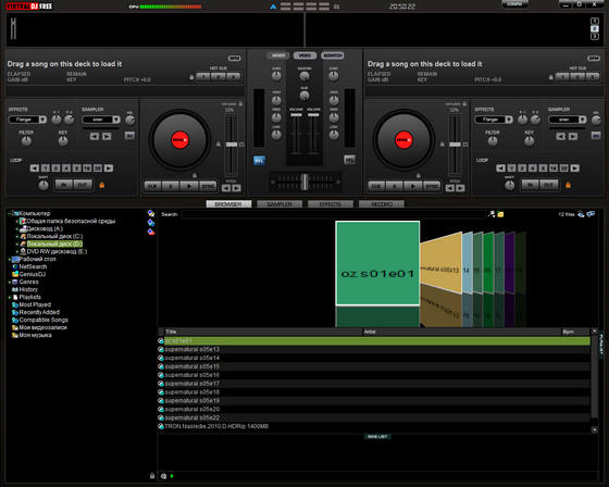 Virtual DJ - программа для диджеев, позволяющая микшировать музыку в режиме реального времени с использованием эффектов, переходов и многого другого. Программа отлично подходит как для профессиональных диджеев, так и для новичков. Virtual DJ содержит в себе множество аудио-инструментов, эффектов и примочек, созданных специально для ди-джеев, есть также возможность создавать музыкальные треки из MP3-файлов во встроенном плеере, программа позволяет разгонять музыку под нужный темп или увеличивать скорость звучания в ручном и в автоматическом режиме. Поддерживается возможность синхронизации треков по темпу и скорости с помощью нажатия кнопки Sync. Результат готового трека можно записать в WAV или MP3 формат. Но лучше всего эту программу использовать в режиме реального времени на дискотеках и вечеринках.