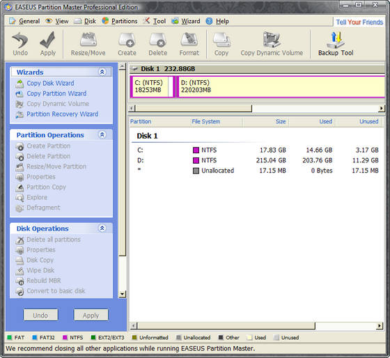 EASEUS Partition Master — удобная программа для разбиения жёсткого диска на разделы, которая не только упростит рутинные задачи, но и поможет вам редактировать разделы диска и управлять ими. А именно — быстро и с лёгкостью создавать, удалять и форматировать разделы, изменяя их размер и расположение без потери данных, с использованием свободного места на диске. С помощью этой программы, вы можете создавать, удалять, форматировать разделы на вашем жестком диске быстро и просто. К наиболее привлекательной функции относится способность изменения размера/перемещение ваших разделов, используя свободное место, без удаления данных.