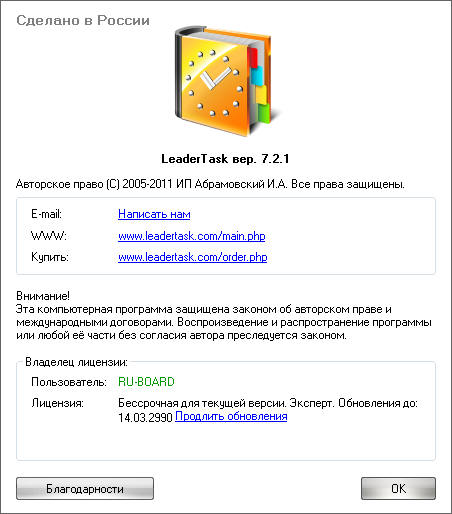 Скачать программу LeaderTask 7.2.1 (11,86 МБ):