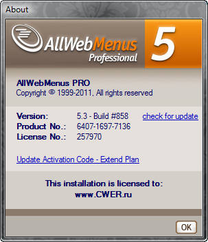Скачать программу AllWebMenus Pro 5.3 Build 858 (9,85 МБ):