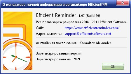 Скачать программу Efficient Reminder Pro 1.67 Build 96 (4,48 МБ):