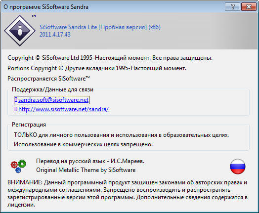 Скачать программу SiSoftware Sandra Lite 2011.4 v17.43 (54,3 МБ):