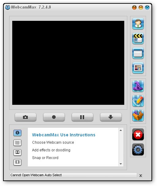 WebCamMax - продвинутая утилита для работы с веб-камерой. Программа, добавляющая изумительные видеоэффекты на все вебкамеры, даже без реальной камеры. Программу можно использовать по умолчанию в таких приложениях, как ICQ, AIM, MSN, Camfrog, Skype, Paltalk, Yahoo, ANYwebcam, Stickam. Можно настроить WebcamMax Full так, чтобы она начинала функционировать и вести трансляцию с камеры только в том случае, когда объектив зафиксирует движение.