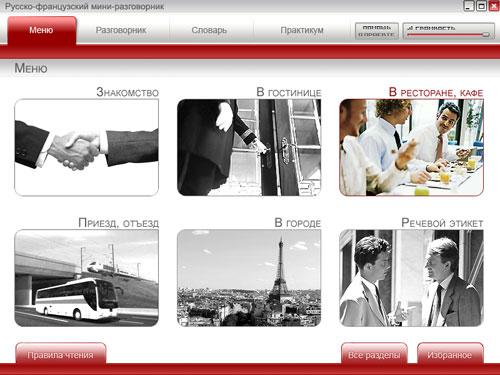 Франция по праву считается туристической меккой Европы. Российских туристов притягивают красоты Парижа, старинные замки Луары, шик Лазурного берега. Во Франции можно увидеть памятники античности и побывать в ультрасовременных кварталах, продегустировать лучшие сорта вин и полюбоваться шедеврами искусства. «Русско-французский мини-разговорник» сделает поездку во Францию еще более приятной, избавив вас от языковых проблем. Около 1 450 озвученных фраз и слов, содержащихся в нем, помогут объясниться в самых распространенных и типичных ситуациях: в самолете и поезде, на границе, в гостинице, ресторане, магазине и т. д. Есть возможность прослушать звучание фраз, сравнить свое произношение с эталоном и сформировать собственный рабочий словарь самых нужных выражений.