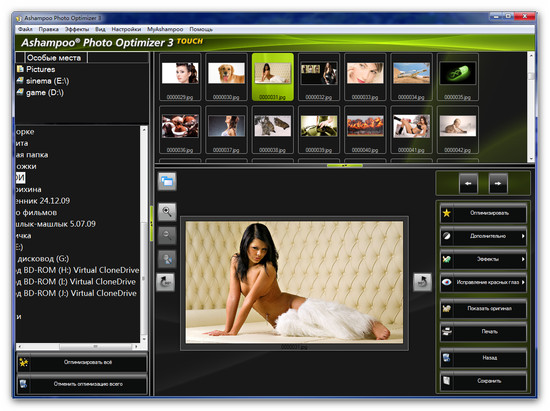 Именно поэтому Ashampoo Photo Optimizer необходим каждому, пользующемуся цифровой камерой. Программа открывает фотографии и показывает их в своем окне. Одного щелчка мышью достаточно для полной оптимизации снимка. И эффект от этой оптимизации вас впечатлит. С помощью Ashampoo Photo Optimizer снимки становятся ярче, светлее, приобретают четкость и контрастность. Если сравнивать показатели до и после преображения, заметно, насколько силен программный алгоритм оптимизации. Если ваши снимки неправильно расположены или перевернуты, вы легко повернете их всего одним щелчком мыши.