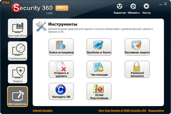 IObit Security 360 - утилита предназначена для удаления шпионских программ и вредоносного ПО, которая обнаруживает, удаляет и защищает ваш компьютер от различных потенциальных шпионов, рекламное ПО, трояны, клавиатурных шпионов, ботов, червей, и угонщиков.