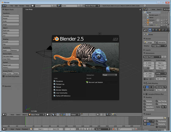 Blender, the open source software for 3D modeling, animation, rendering, post-production, interactive creation and playback. Available for Windows, Linux, Irix, Sun Solaris, FreeBSD or Mac OS X. Blender has proven to be an extremely fast and versatile design instrument. The software has a personal touch, offering a unique approach to the world of Three Dimensions. Use Blender to create TV commercials, to make technical visualizations, business graphics, to do some morphing, or design user interfaces. You can easy build and manage complex environments. The renderer is versatile and extremely fast. All basic animation principles (curves & keys) are well implemented.
