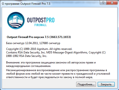 Скачать программу Agnitum Outpost Firewall Pro 7.5 (3663.571.1653) Beta 3 (29,98 МБ):