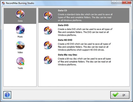 Many users are tired of over-complicated CD burning applications that are getting harder and harder to use. Sometimes you can waste most of your time just trying to find a function. RecordMax Burning Studio focuses on what you want: To burn discs quickly, easily, with maximum quality and minimum hassle. It includes everything you need to be able to do that. And it excludes everything that could get in the way.