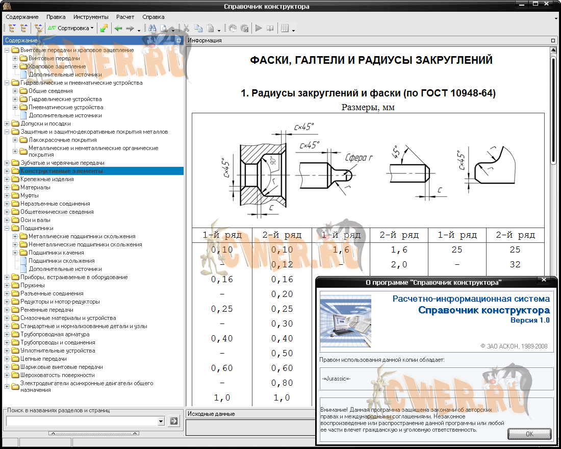 Электронные статьи Справочника конструктора содержат общетехнические сведения, сведения о конструктивных элементах деталей, стандартных изделиях, типовых узлах, деталях и методики их расчета. Представлены также справочные данные о материалах, шероховатостях поверхностей, допусках и посадках, предельных отклонениях формы и расположения поверхностей.