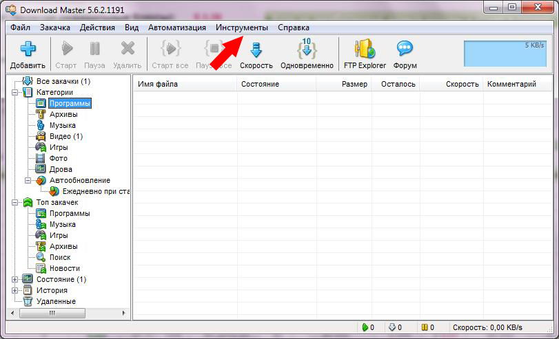 - Запустить Download Master - "Инструменты" - "Менеджер сайтов..."