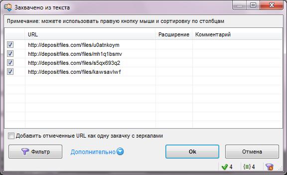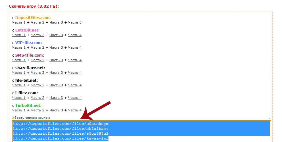 - На странице новости нажать "открыть список ссылок" (под самими ссылками) и скопировать все ссылки на выбранном файлообменнике). Менеджер перехватывает сочетание клавиш Ctrl+C, отметить галочками файлы для загрузки, подтвердить действия для всех файлов. Закачивать можно и по одному файлу.