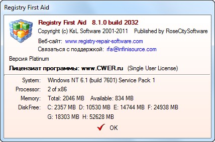 Скачать программу Registry First Aid Platinum 8.0.1.2032 (6,17 МБ):