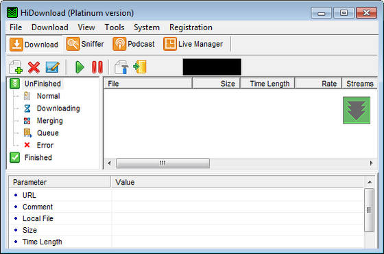 HiDownload - менеджер загрузок. Поддерживает работу по протоколам HTTP, FTP, RTSP (Windows Media), PNM, MMST и MMSU (это значит, что потоковое аудио - RA, RM и Apple Quicktime Streaming - можно "скачать" без проблем). Может работать через прокси, позволяет просматривать архивы и скачивать из них только необходимые файлы, позволяет сохранять Flash, имеется встроенный поиск MP3-файлов. Кстати говоря, есть у этой программы и внутренний поиск.