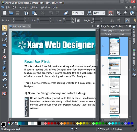 Xara Web Designer - простой в освоении и эксплуатации инструмент для прототипирования и создания веб-сайтов. В отличие от большинства существующих веб-конструкторов, Xara Web Designer представляет собой инструментарий, работающий по принципу WYSIWYG, и позволяет дизайнерам создавать сайты, соответствующие стандарту XHTML и корректно отображаемые в любом стандартном браузере на любой платформе. Разработчикам не придется тратить время на освоение языков разметки и написания сценариев.