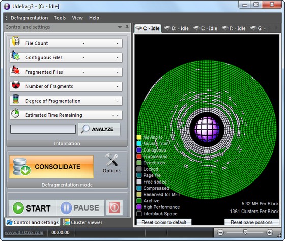 UltimateDefrag - это дефрагментатор и оптимизатор размещения файлов на жестком диске, который учитывает больше чем только фрагментацию файлов. Фрагментация файла - только незначительная часть улучшения работоспособности накопителя, другая, более важная часть - относительное размещение наиболее часто используемых файлов на вашем винчестере, а также уплотнение файлов. UltimateDefrag имеет очень высокую скорость работы и позволяет достигнуть максимальных результатов.