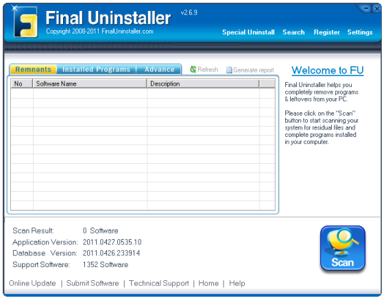 Final Uninstaller - программа позволяет очищать жесткий диск и системный реестр от мусора, оставшегося после удаления каких-либо программ. Программа использует высокоэффективный алгоритм обнаружения, который позволяет быстро просканировать систему и найти ненужные файлы и записи в системном реестре для каждой установленной программы на вашем компьютере. За несколько щелчков мыши программа просканирует ваш жесткий диск и реестр Windows, после чего предоставит вам список приложений, которые были неправильно деинсталлированы. После чего вы сможете выбрать приложения для последующего их полного удаления с компьютера. Программа имеет понятный пользовательский интерфейс и проста в использовании, поэтому подходит для любого пользователя.